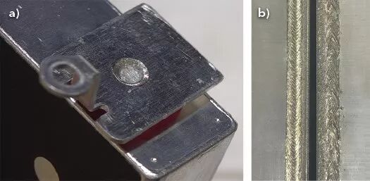 连续焊 随着新电池技术的发展以及电池容量越来越高,电池制造行业对焊接技术的需求正在不断提升。电动汽车尤其是这一趋势的主推手,汽车行业及汽车供应商正在寻找稳健、高效的焊接工艺,以大批量生产铜铝接头,这种接头在电动汽车(EV)电池和电力存储产品中有着广泛需求。 激光焊接铜和铜合金所面临的挑战,主要源于材料的两个主要物理属性——对大多数工业级高功率激光类型的低吸收率,以及在加工过程中的高导热现象。固体铜对近红外激光的吸收,在焊接刚开始时非常差,仅为4%,因此将光耦合到材料中非常困难。采用较短波长(如532nm的绿光激光器)可以提高铜对激光能量的吸收,但是在这个波段,达到深熔焊所需要的高功率或是经过工业验证的激光器,目前还不完备。 单模和低阶模近红外1μm光纤激光器为此提供了答案,这些激光器可以将光斑聚焦到20μm的小光斑,1kW单模激光器能实现超过1MW/cm2的功率密度。利用这种高功率密度,可以迅速克服材料对激光的吸收不足,熔融铜或蒸发铜的吸收增加到60%以上,以建立稳定的匙孔。 铜焊接中的另一个问题是不稳定性,因为熔化金属的低粘度和表面张力,在低速焊接时会导致飞溅和气孔。[1] 将速度增加到超过10m/min,以最小化这些不稳定因素,形成稳定的焊接过程。然而,这意味着最好的焊接参数在传统的运动系统(如机器人)达到极限的范围内。此外,熔深随着速度的增加而减小,而且焊缝变得非常窄。这必须要通过增加激光功率来补偿,而增加功率则需要对系统进行更高的资本投资。 新的工艺研究表明上述现象可以避免,稳定焊接过程不仅仅可以通过增加焊接速度来实现,而且还可以通过动态定位激光技术来实现,例如用摆动焊接头实现稳定的焊接。[2]这种摆动技术允许以低线性焊接速度实现稳定焊接,并且对熔深影响最小。例如,只利用一台1kW单模光纤激光器,便可以获得熔深达1.5mm的高品质铜焊缝(见图2) 图2:用单模光纤激光器焊接三根扁平的1100铜线 同样的技术也可用于高亮度多模激光器,并已广泛用于改善铝制外壳(图3a)的焊接质量和焊接一致性。温度和冷却速率的变化梯度比传统的激光焊接慢,这有助于消除缺陷和抑制飞溅产生。比较用标准焊接技术和摆动焊接技术焊接5000系列铝外壳(图3b),使用的功率同为3.5kW,比较显示,摆动焊接可实现更为稳定的无气孔焊接。焊缝熔深为2mm,可以明显看出在整体焊接质量方面,摆动焊接技术更胜一筹。 图3:焊接1100和3003铝电池外壳(a)。用摆动焊接技术(左)和非摆动焊接技术(右)获得的5000系列铝制外壳的焊接质量(b)。